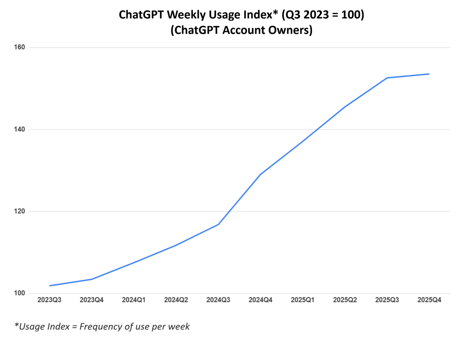 - Occam monitors several metrics related to AI adoption and platform engagement. Notably, this quarter’s data suggest a potential flattening in ChatGPT usage by account owners, signaling a potential pause after quarters of steady growth. Other datasets tracked by Occam include the share of tasks now performed on ChatGPT that were previously conducted through Google Search (data available upon request).